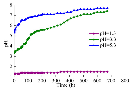Changes of pH value of the solution with soaking time.