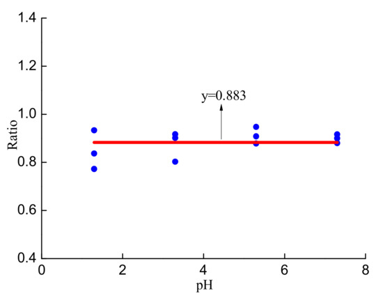 The variation trend of the ratio of precursory stress to peak stress with pH.