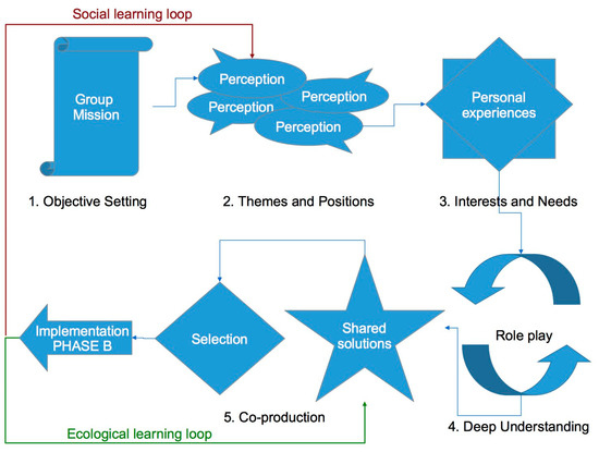 The co-production of management proposals was structured through a participatory and iterative process aimed at increasing trust among participants [66]. It envisaged a series of steps that gradually allowed participants to overcome barriers to communication, share knowledge (both scientific and local knowledge) and experience, and uncover and value common ground and shared interests (Figure 2).