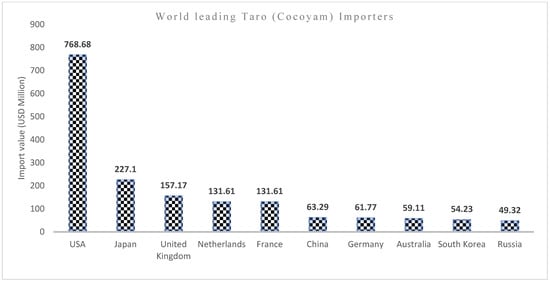 Top 10 World Taro Importers (2018), Source: Authors’ graph using Tridge 2020 data [12].
