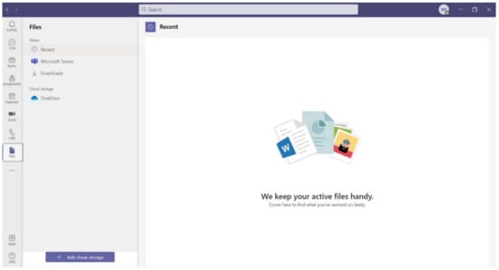 Similar applications to JitsiMeet are, for example, MS Teams, Zoom, Skype, Google Meet, or Cisco Webex. MS Teams and JitsiMeet applications are mostly used at Slovak universities. MS Teams is part of the Microsoft 365 Education service. Students and teachers at eligible institutions can register for Office 365 Education free of charge. It is a workspace for real-time collaboration and communication, meetings, file and application sharing, and more. It includes chat with sharing the text, audio, video, and files and allows private chat, which can later be shared with the entire organization. It also offers the ability to store files, documents, and other things in one place. MS Teams consists of channels, which are conversations that can take place, e.g., with teammates. Each channel is dedicated to a specific topic or project. Other applications can also be loaded, such as PowerPoint. Among other things, there is also a calendar with the possibility of planning as well as reminding of individual tasks or events (Figure 2). Microsoft launched the Teams application in 2016. MS Teams is the successor to the Skype for Business platform, which will end on 31 July 2021 [33].