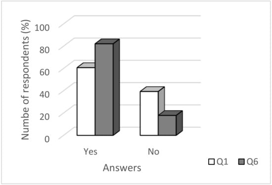 Division of students’ numbers by answers to Q1 and Q6 questions (%).