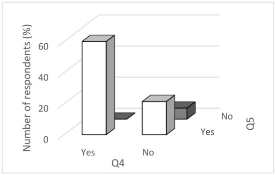 Division of students’ numbers by answers to questions Q4 and Q5 (%).