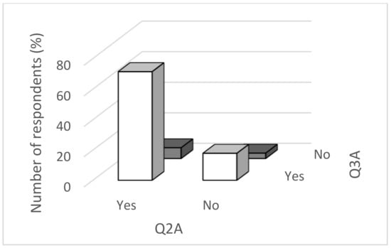Division of students’ numbers by answers to Q2A and Q3A (%).