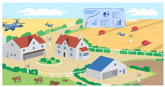 The 2050 goal of sustainable farming is to increase agricultural yield to meet the food demand of 10 billion people and calls for smart farming [1]. The concept of smart farming refers to the application of cutting-edge technologies, including artificial intelligence (AI), internet of things (IoT), and high-speed wireless network into farming practices to maximize agricultural production and sustainability [2,3,4]. Following the trend and development, traditional agriculture practices are converting into new wireless and innovative technologies for both cultivation and supply chain management in Bangladesh. Moreover, the concept of Agri-Food 4.0 has initiated a revolution in traditional farming by introducing the fifth generation or 5G wireless communication technology to the field [4]. Agri-Food 4.0 refers to a comprehensive digitalized approach for higher productivity and practical and efficient land management to achieve agricultural sustainability, quality of life for farmers, and overall competitiveness of the sector [5].