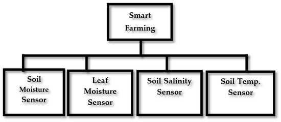 A variety of sensors is used in smart farming to help farmers and agronomists make the best decisions regarding planting, fertilizing, and harvesting crops [36]. In Figure 3, we highlighted some of the most widely required sensors for site-specific crop management. The following subsections (Section 3.4.1, Section 3.4.2, Section 3.4.3 and Section 3.4.4) highlight the essential sensors for our proposed AI and IoT based smart farming system and its outcome.