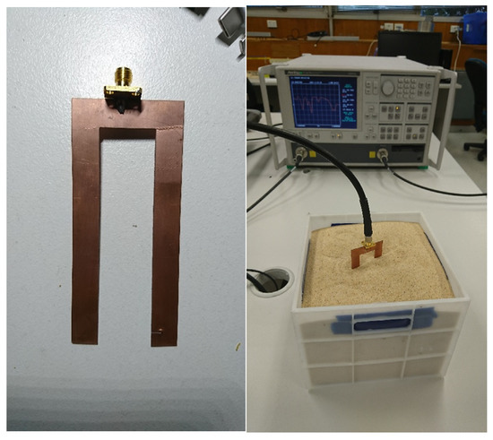 RFID based Salinity sensor (left image) and salinity sensor emerged in soil (right image) [42].