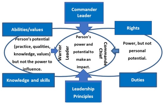 Along with changing threats posed to international security, the armed forces have transformed themselves, adopting new postmodern forms of organization in which the leadership and leaders play the main role. In general, the leadership phenomenon has aroused great interest in the world of global academic science. Management and leadership, as critical factors for organizational success or failure, have been attracting increasing research and discussion worldwide. Reviews of scholarly studies suggest that there are many different theoretical approaches to explain the complexity of the leadership process [1,2,3,4,5,6,7,8,9,10,11,12,13,14,15,16]. Some researchers conceptualize leadership through the prism of traits or behaviors, whereas others view it from an information processing perspective or a relationship perspective.