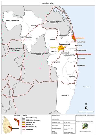 - UDA. Area Development Plan—Kalmunai Muncipal Council Area; Urban Development Authority: Kalmunai, Sri Lanka, 2013.