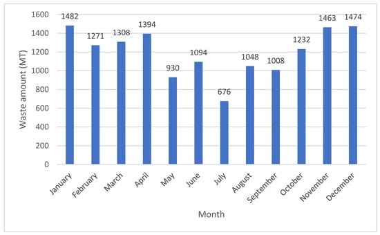 Figure 3 shows a sample monthly waste collection amount in the year 2017. It shows an average of 1200 MT of MSW is collected by the KMC every month.