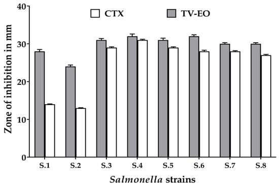 2.4.5. In vitro Effect of TV-EO on the Growth of Salmonella