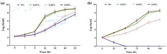 3.3.2. In Vitro Effect of TV-EO on the Growth of Salmonella