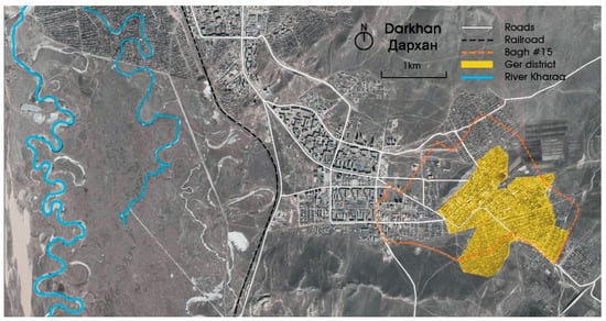 Map of ger district (bagh in Mongol) 15, Darkhan, Mongolia. Own work based on Google Maps, n.d.