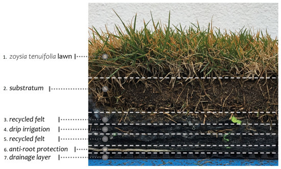 From a large-scale perspective, the beneficial impact of green roofs in urban water management [4,5,6], urban heat island mitigation [7,8,9,10], urban noise reduction [11,12,13], carbon sequestration increase [2,14], visual quality improvement [5], and biodiversity conservation is well recognized such as their positive contribution [6,15] to the human well-being [16,17].