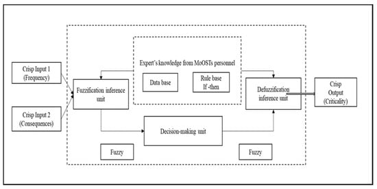 However, ref. [27] critiqued traditional approaches for criticality assessments that are predominantly based on subjective expert opinions, stating that “when criticality assessments are performed using traditional qualitative criticality matrix, a suboptimal classifications tend to occur as there are no means to incorporate actual circumstances of boundary of the input ranges or at levels of linguistic data and criticality categories.” Although many other methods have supplemented existing traditional criticality assessments within industrial maintenance, including multi-criteria decision-making methods to overcome the perceived challenges of this method. This is by means of subjective expert opinions that have been implemented by combining group decision-making with a popular multi-criteria decision-making approach, such as the analytical hierarchy process (AHP) [28,29], etc. While the usefulness of obtaining benchmarked results from expert opinions, especially when such decision-making is associated with difficulties in ranking objectives into a hierarchy, an important function of AHP cannot be overlooked, but the inherent weakness, especially in terms of uncertainty and vagueness in weight allocations, limits its effectiveness [28]. The AHP remains popular in literature because it is a significant improvement from traditional qualitative criticality assessments that depend on the subjectivity of group decision-making as it can measure levels of inconsistencies in the judgements provided by experts. However, despite the popularity of AHP, it is often criticised for its inability to capture the subjectivity of human judgements, which is an essential part of group decision making, and it then implies that the AHP cannot be a standalone approach, but it can be strengthened by combining it with an approach that can capture subjectivity. For example, Fuzzy logic can convert verbal assessments into crisp values where necessary [30,31]. Many differences between the traditional qualitative criticality method and distinct computational method, fuzzy logic, exist, as shown in [32], and these differences have been highlighted in Appendix A.