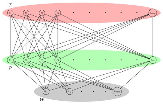 In this subsection we propose an index, based on the method used in the national Poland monitoring applying the Macrophyte Index for Rivers (MIR) proposed by Szoszkiewicz et al. in []. Now we divide the vertex set of the network G in three disjoint set , and . The vertices in represent the same set that in the previous subsection so that macrophytes with tolerance value of indicate clean waters. The vertices in represent the macrophytes families grouped. Moreover, the vertices in represents value ranges from 1 plants with a large tolerance range (generalist species) to organisms of a narrow tolerance scope (specialist species). Note that for every .