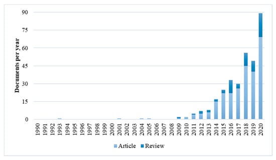 The implications of FLW on food security are an attractive multidisciplinary research area contributing to identifying and understanding societal challenges posed by the constant (unsustainable) development of agri-food systems. We provide an overview on the state-of-the-art academic research on the FLW-food security nexus through a systematic and bibliometric approach. The systematic search of the literature on FLW and food security took place in January 2021 and focused on documents indexed in the Scopus database, including studies since 1990 until 2020 (no time limits were set in the bibliographic search [20]). The document search was conducted following the Preferred Reporting Items for Systematic Reviews and Meta-Analysis (PRISMA) protocol [21]. In a first phase, documents were selected when in the title, abstract or keywords one of the terms “food waste”, “food loss” or “food lost” interacted with the term “food security”. The terms “food waste”, “food loss” and “food lost” allowed us to identify the broader topic covered by this study; the term “food security” was applied to restrict the search to the implications of FLW on food security. This search led to a preliminary sample of 440 documents from which only peer-reviewed articles published in academic journals in English were selected [22,23]. The final number of documents obtained was 327.