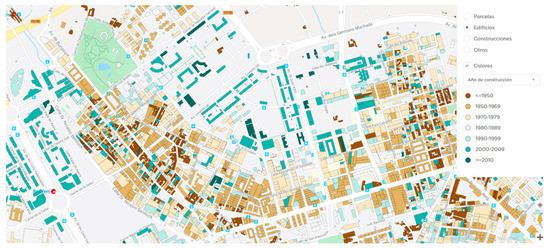 31]. Each cadastral reference is cleaned and checked for construction date and height, developing the GIS model in