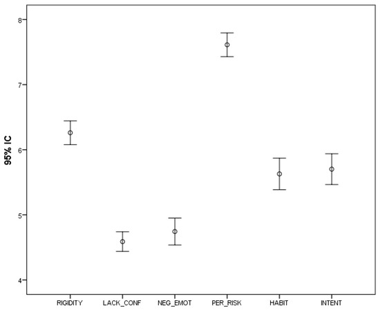 Perceived risk. The scale of Mitchell and Vassos [80] was used. This scale was developed to study the reduction in perceived risk in purchase scenarios. In the present study, the items were adapted to reflect situations related to water scarcity.