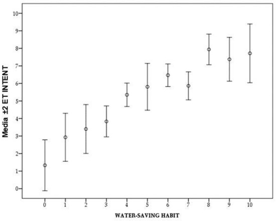 The relationship between water-saving habits and the reported intention to be a water saver has been widely studied [28]. For instance, Chaudhay et al. [29] showed that habits are significant in explaining intentions to save, although many individuals experience cognitive dissonance between their beliefs and the actions that they actually perform.