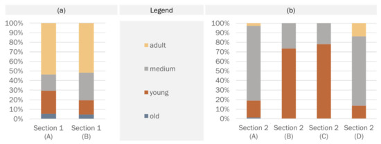 Tree’s age variety; (a) Section 1; (b) Section 2. (edited by Szabó, Rosa & Lahmar).
