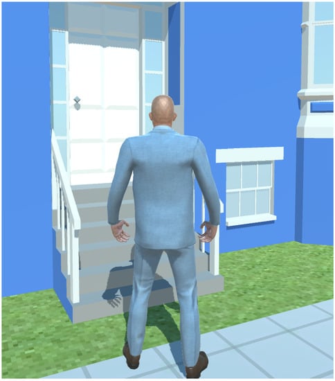 Regarding the lower limbs, this simple scenario can support rehabilitation by climbing five steps at the entrance of a house, as one can observe in