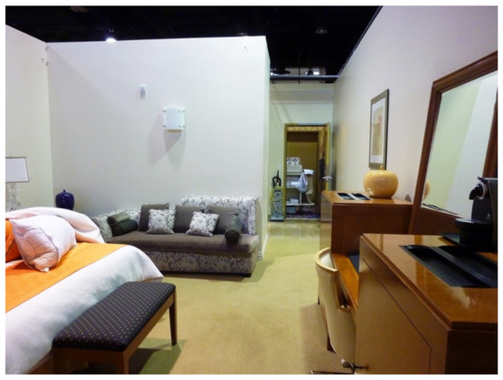 The interior of the Culinary Academy including mock-ups of hotel rooms, much like theater sets, which enable training of housekeepers for cleaning in ways that are time-efficient while meeting the high standards of the hotels. Source: Aseem Inam.
