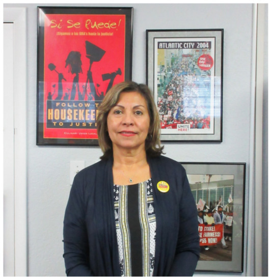 This vision is operationalized in a number of different ways. For example, men and women in union positions are paid the same, while across the United States, women are paid USD 0.79 for every dollar a man earns. Yet another example is that members are protected against sexual harassment and gender discrimination, and when cases arise, there is a clear grievance procedure to be rehired and to recoup lost wages. In this manner, the union not only represents, according to Arguello-Kline, “57,000 people but [their] 174 countries [as well]. Yeah, there are people from all over the world in the properties we represent. Majority Latinos and majority women but we have people from Ethiopia, we have people from Bosnia, Serbo-Croatians, Asians … We make leaflets in a lot of different languages you know, for people they can get the information in their own language. That make us very, very strong ... you know, because we [work with] all the different ethnic groups” [34].