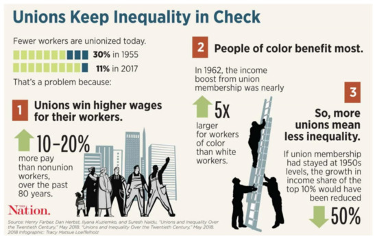 - Konczal, M. There is Power in a Union. The Nation Magazine. 23 May 2018. Available online: https://www.thenation.com/article/archive/there-is-power-in-a-union/ (accessed on 22 April 2021).