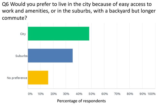 Stone et al. [56], a survey of Australian housing aspirations, provides a good example of how our survey and more topic-specific surveys might be used in a complementary way. The two surveys’ responses intersect at some key points. For example, both seem to indicate that most respondents are relatively happy with their immediate housing situation, at least in the immediate or 1–2 year short term. Looking forward, there is a desire in both surveys for a greater variety and choice of housing options and especially more compact and affordable dwelling options; and that there are opportunities to encourage decentralization of living especially to regional towns and centres. Our survey allows such findings to be set in the context of a much broader range of urban issues and perceptions, whilst the Stone et al. survey can pursue much more detail in the specific housing issues (e.g., how housing aspirations vary across individuals’ life cycles).