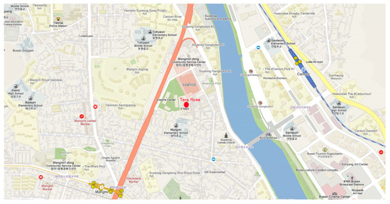 Later, when the Busan Biennale was held in 2016, a proposal was made to reuse this neglected facility through an agreement between the public and private sectors to create a new cultural complex. The cafe has become a representative tourist attraction since 2016 and attracts several tourists owing to its proximity to Suyeong Historical Park and BEXCO, which are located within 2 km, and Haeundae and Gwangan Bridge, which are located within 5 km (Figure 14).