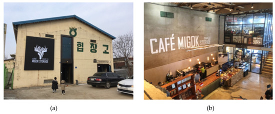 - Shin, K. Analysis of Characteristics of Spatial Organization and Renovation Methods in the Renovated Architecture of NACF Warehouses with a Space Diagram. Master’s Thesis, Hanyang University, Seoul, Korea, 2018; pp. 6–8. Available online: http://www.riss.kr/search/detail/DetailView.do?p_mat_type=be54d9b8bc7cdb09&control_no=ebd2a9b803a04aa3ffe0bdc3ef48d419 (accessed on 21 April 2021).