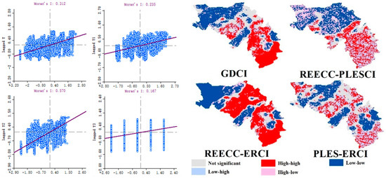 The global Moran’s index and local Moran’s index of coupling degree and coupling coordination degree.
