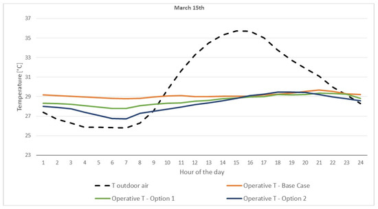Figure 4 reports the temperature values referred to March 15th (a typical hot summer day).