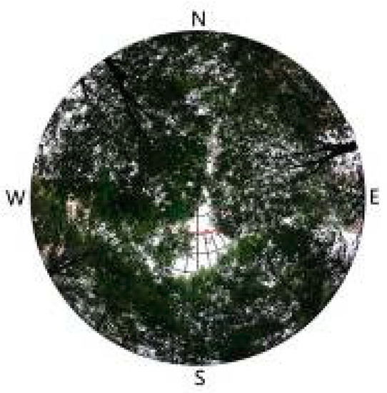 (4) SVF measurements: Photos were taken vertically at all measurement points within the plant community by a full-frame SLR camera with a fisheye lens. After PS pretreatment, photos were imported into RayMan software [47] to further determine SVF values. An example is shown in Figure 3.