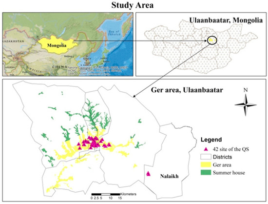 - So, Y.; Lee, N.; Kim, S.; Lee, Y.; Ochir, C.; Lee, K. Characteristics of Lifestyle and Living Environment of Ger District Residents in Ulaanbaatar, Mongolia. Korean J. Public Health 2019, 55, 12–21. [Google Scholar] [CrossRef]