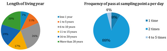| 12. How many times do you and your family members pass around the sampling site per day? | 0.008 | −0.130 | −0.056 | 0.759 |