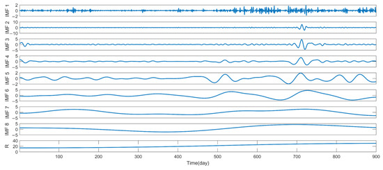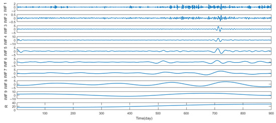 31] applied the EEMD to carbon price decomposition, and the experimental results prove that the performance of EEMD is better than that of EMD. However, while solving the inherent modal mixing problem of EMD, EEMD brings new modal mixing problems. To this end, for solving the problems of EEMD, the complete ensemble empirical mode decomposition with adaptive noise (CEEMDAN) was proposed [