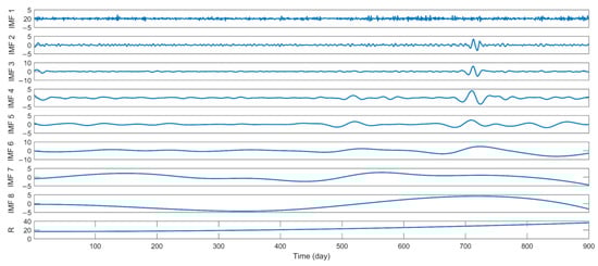 The th modaxl component produced by ICEEMDAN is denoted as . On the basis of the EMD algorithm flow, the ICEEMDAN algorithm steps are as follows: