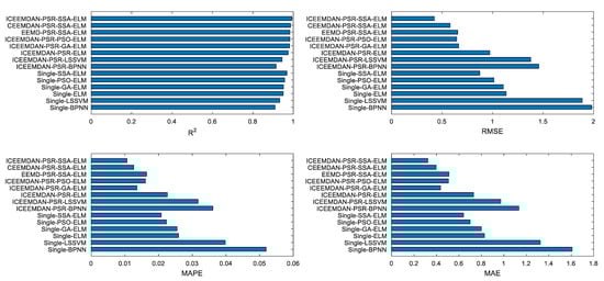 Table 3. The specific forecasting steps are similar to the Hubei carbon price forecast. The evaluation indicators of the 14 prediction models are shown in