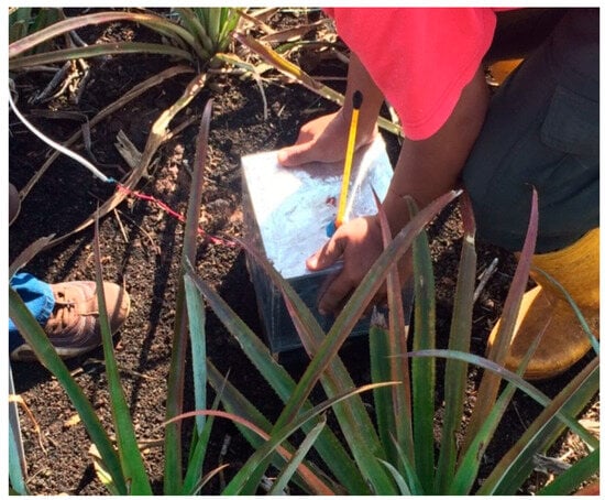 - Mohammed Selamat, M.; Abdul Rahman, H. Amalan kultur. In Penanaman Nanas—Nanas Makan Segar Dan Nanas Kaleng; Mohammed Selamat, M., Ed.; MARDI: Serdang, Malaysia, 1996; pp. 24–34. [Google Scholar]