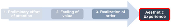 The functionality of the human brain is essential for aesthetic judgments. Birkhoff, therefore, defines a three-step process that takes place in the human brain when an esthetic experience is made [3] (p. 3). This process is illustrated in Figure 1.