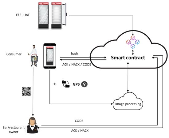 In this variation, consumers visiting the places where EEE is located can send a picture of the EEE itself, if it is accessible; this picture might provide further information, which cannot be gathered through IoT (Figure 4 and Figure 5). The picture (validated by an image processing software) might be sent to the BC system, together with other information tracked by the sensors (e.g., inner temperature, energy consumption, number of times that the door has been opened). This solution might allow companies to avoid the visits performed by corporate representatives.