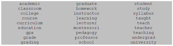 - Tseng, C.-W.; Chou, J.J.; Tsai, Y.C. Text Mining Analysis of Teaching Evaluation Questionnaires for the Selection of Outstanding Teaching Faculty Members. IEEE Access 2018, 6, 72870–72879. [Google Scholar] [CrossRef]