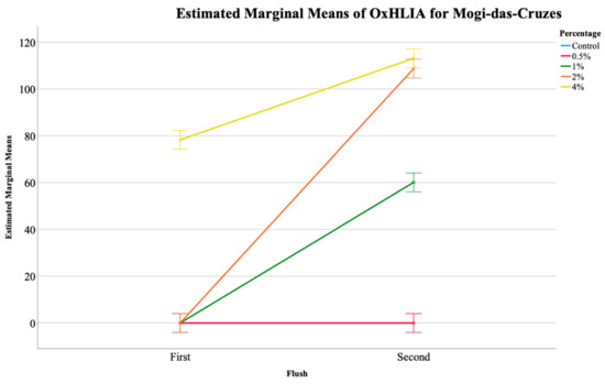 Estimated marginal means (EMM) plot of the oxidative hemolysis inhibition (OxHLIA) analysis of the Mogi-das-Cruzes mushrooms.