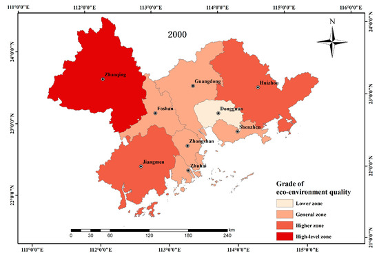 Distribution of eco-environmental quality in Pearl River Delta region in 2000.