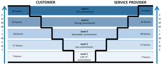 - Sequential growth in the level of commitment allows for the identification of the level achieved and helps define the actions necessary to improve performance and advance to a higher level of involvement; although the increase in involvement does not have to be identical for the client and the service provider.
