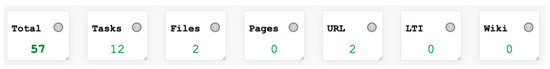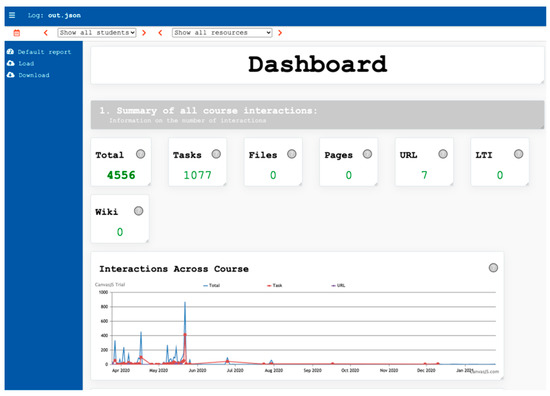 Once the data is loaded into the tool, we will be able to see the widgets (see Figure 6), which are explained in the previous section, categorized in such a way that the user may find it useful when analyzing the students’ participation and engagement in the course.
