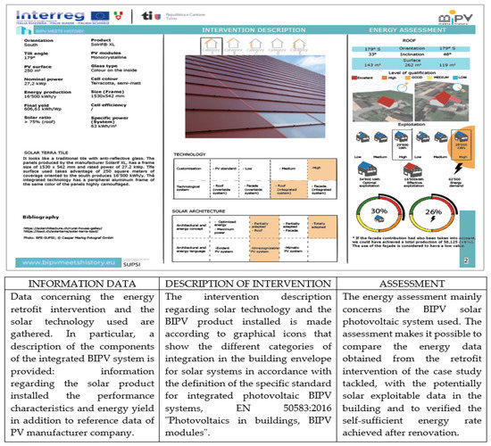 - BIPV Meets History: Value-Chain Creation for the Building Integrated Photovoltaics in the Energy Retrofit of Transnational Historic Buildings, Interreg V-A Italy-Switzerland Co-Operation Programme 2014–2020. Available online: http://www.bipvmeetshistory.eu (accessed on 19 February 2020).