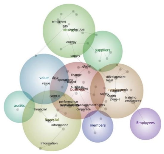 Due to the innovations in data-analytics, the author was able to systematically analyze, exploit, and synthesize large quantities of text data. Such data in text form are a rich and fundamental source of information that allows the comprehension of social behavior in humans and organizations [27,28,29]. Thus, the findings of this study present fresh insights into the nature of corporate sustainability reports and how these reports differ across industrial sector and national origin. For the variable of industrial sector, no significant agreement among the sectors could be found because of the unique features of their business operations and internal/external stakeholder groups. Nevertheless, the relevant concepts of environmental sustainability appeared throughout the reports of the selected corporations.